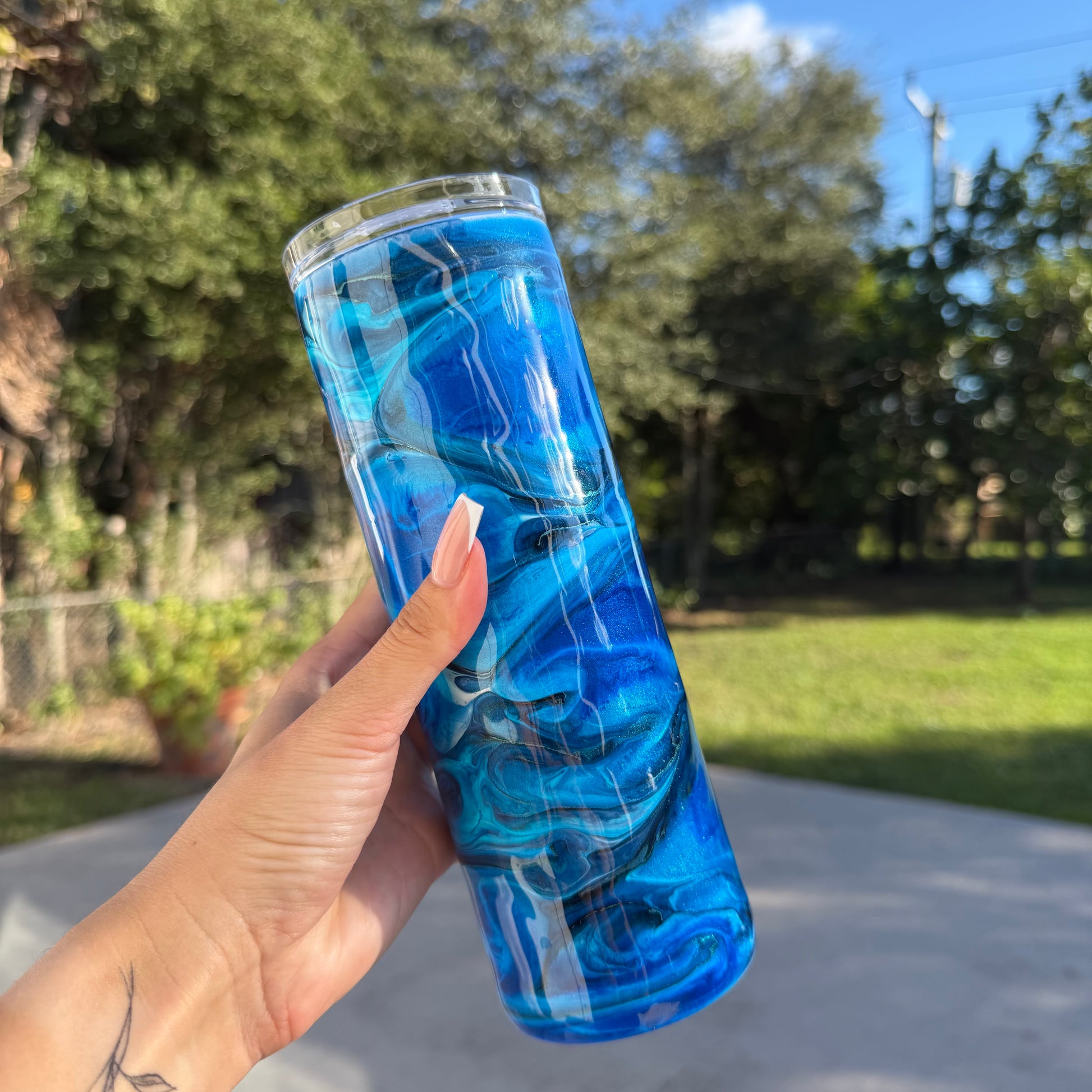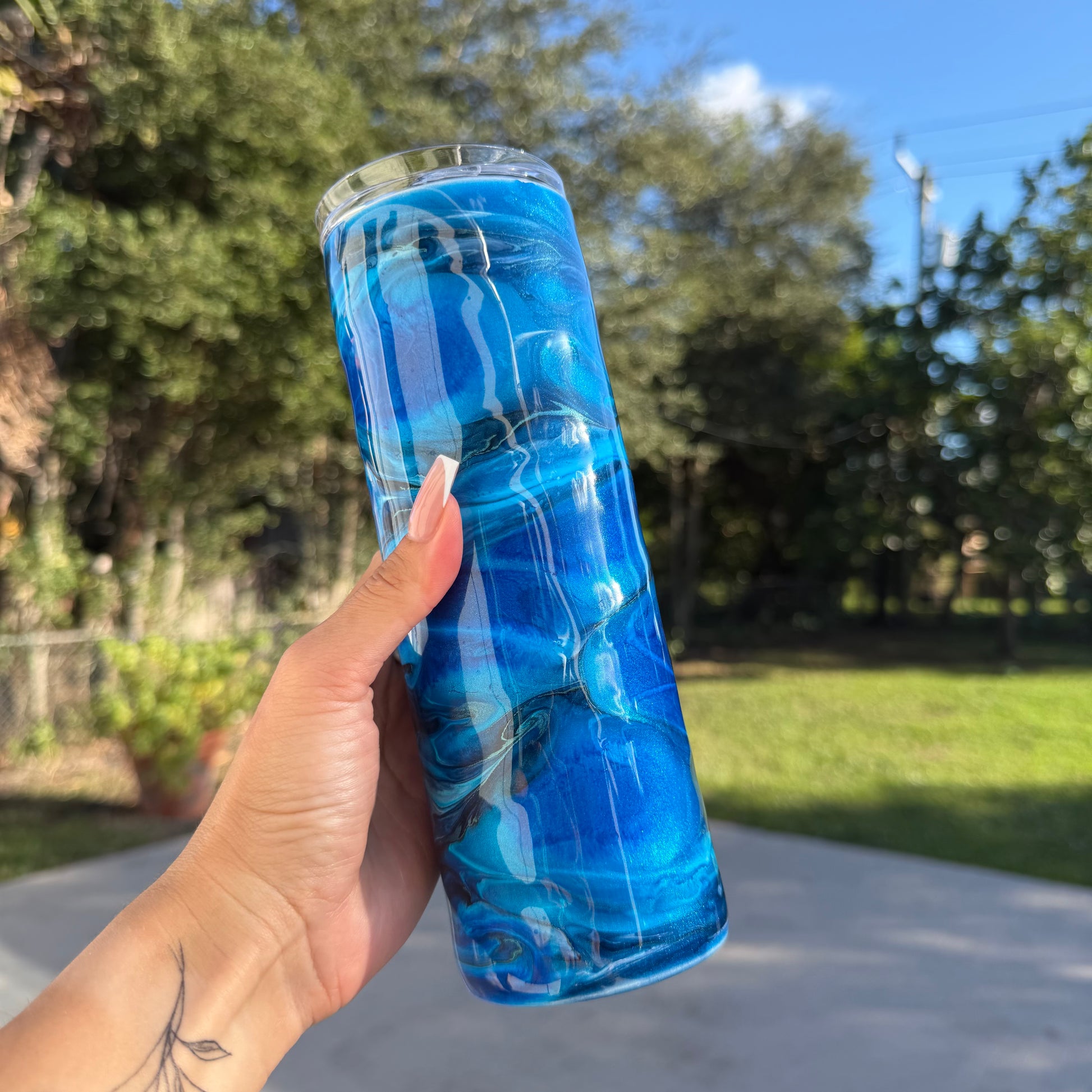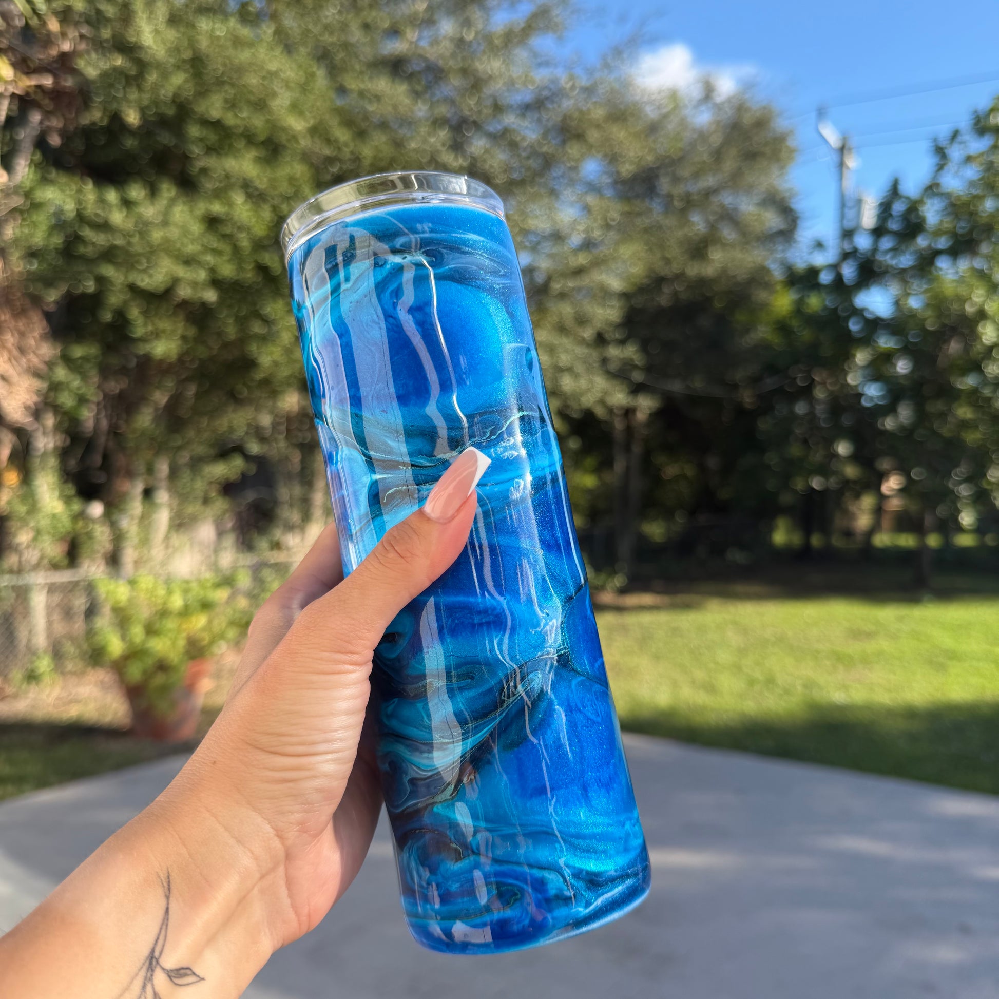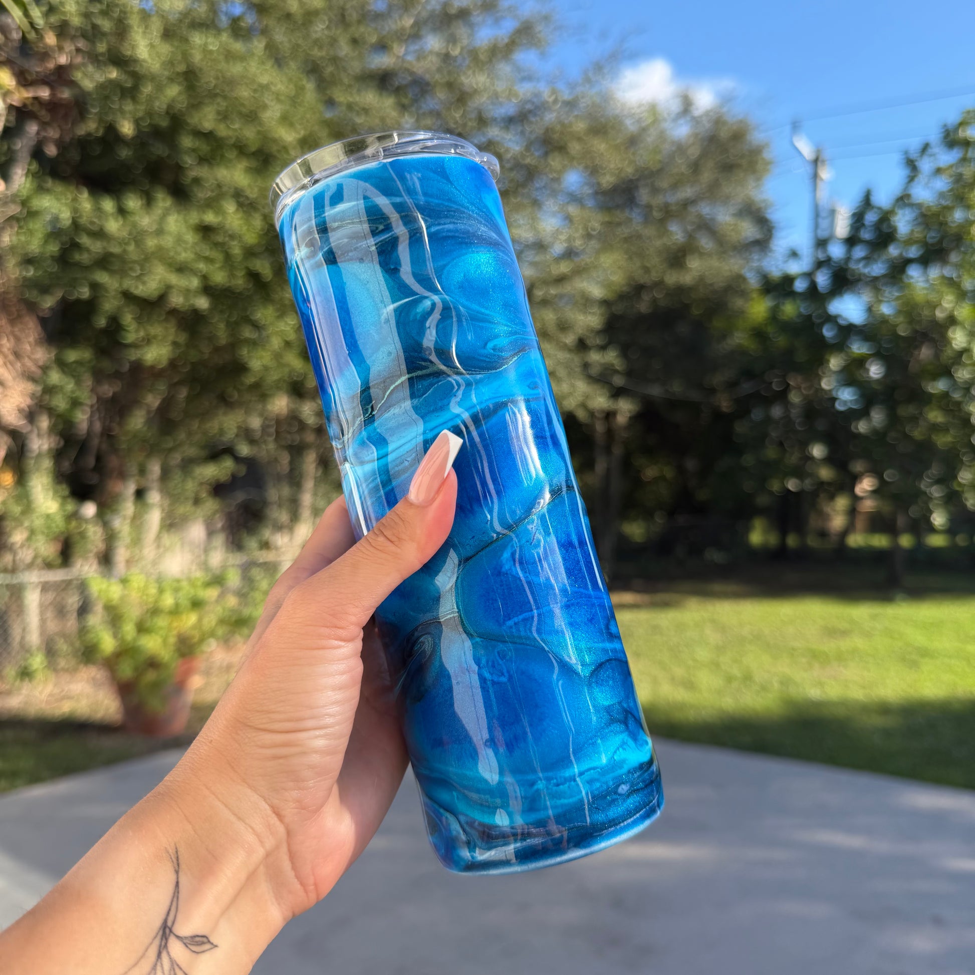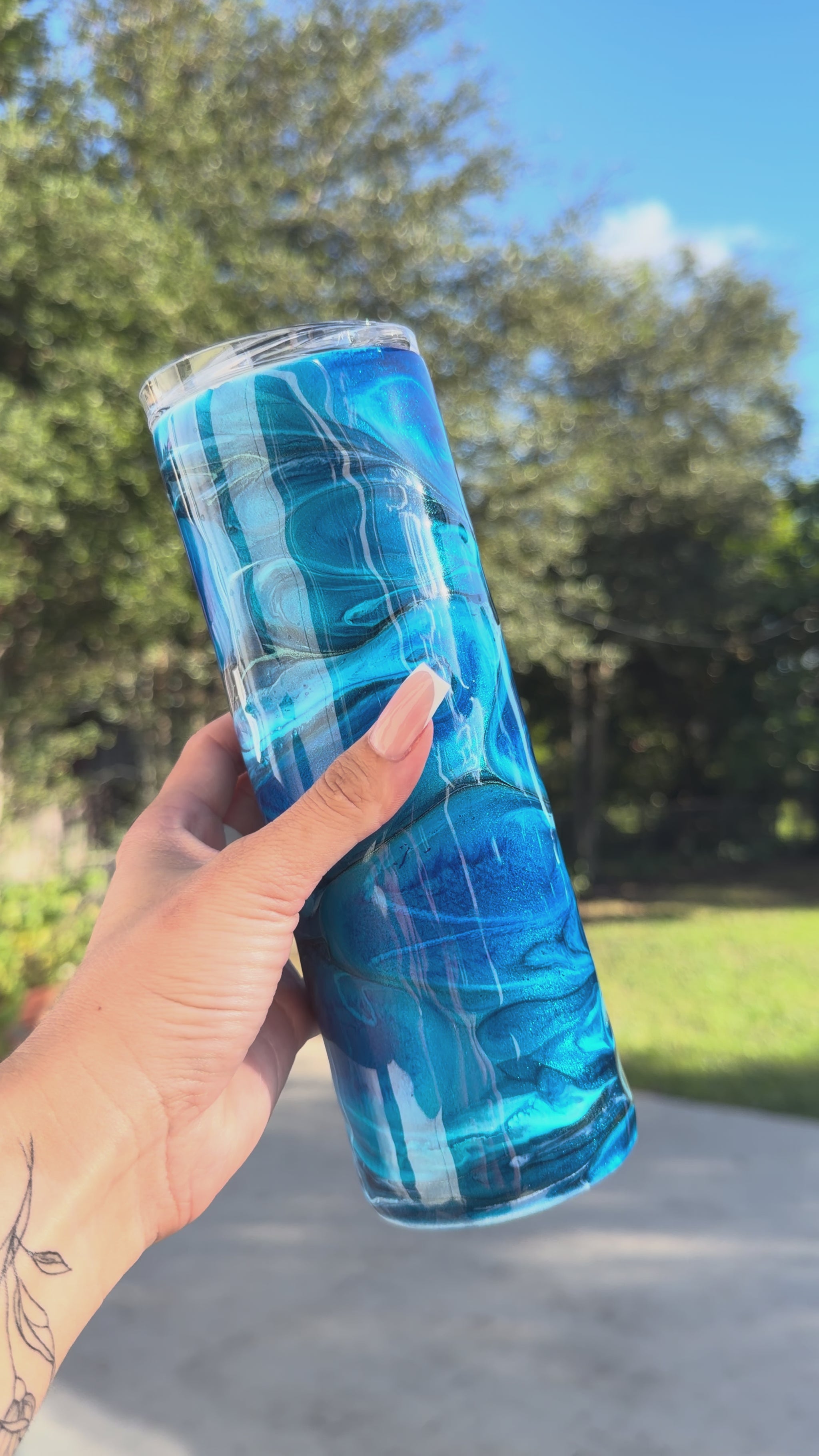 Elevate every sip with our beautifully crafted, one-of-a-kind 20 oz tumblers. Perfect for iced coffee, smoothies, seasonal cocktails, and more! Each tumbler comes with a clear sliding lid and straw for easy, spill-free sipping on the go—bringing a touch of elegance to your day.