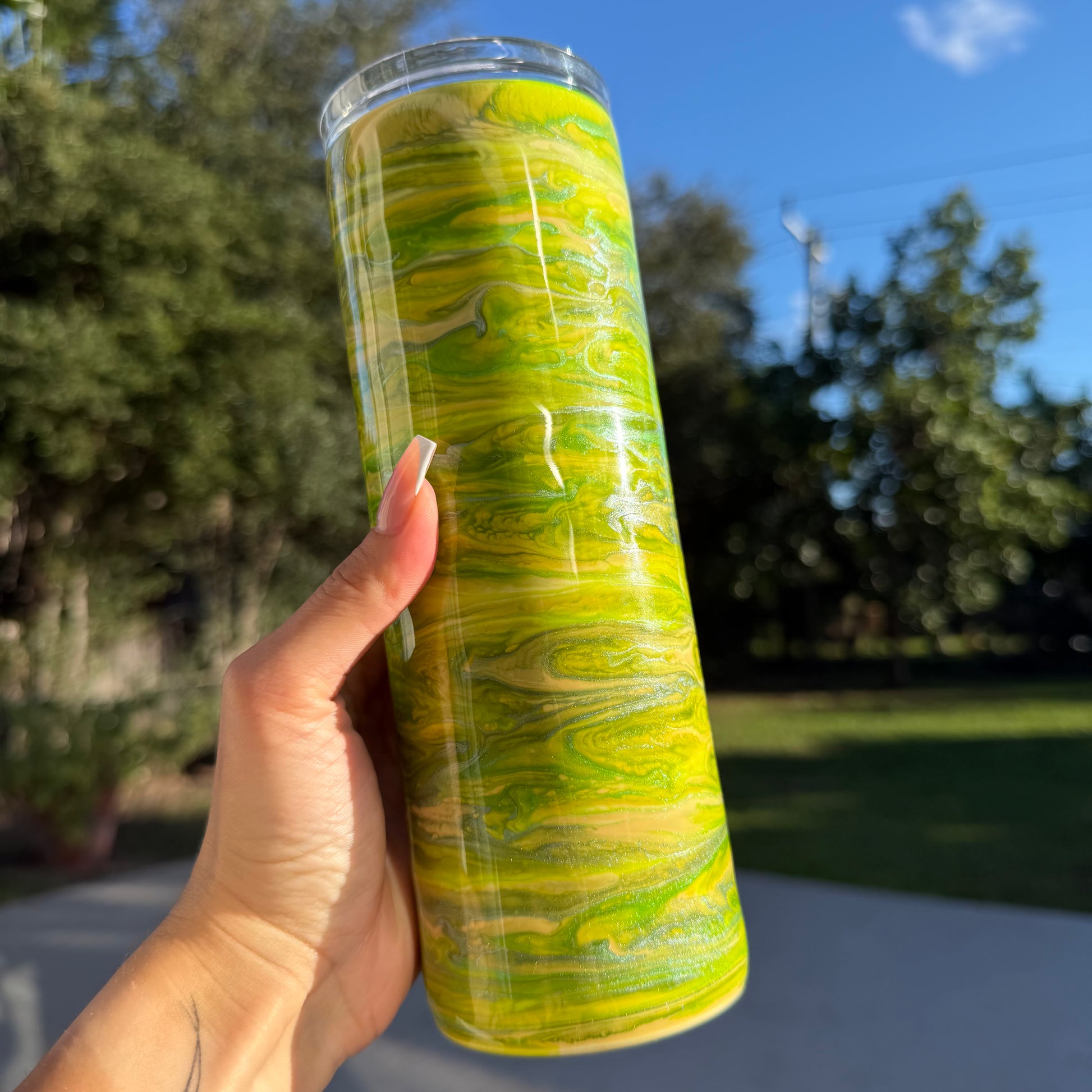 Elevate every sip with our beautifully crafted, one-of-a-kind 20 oz tumblers. Perfect for iced coffee, smoothies, seasonal cocktails, and more! Each tumbler comes with a clear sliding lid and straw for easy, spill-free sipping on the go—bringing a touch of elegance to your day.