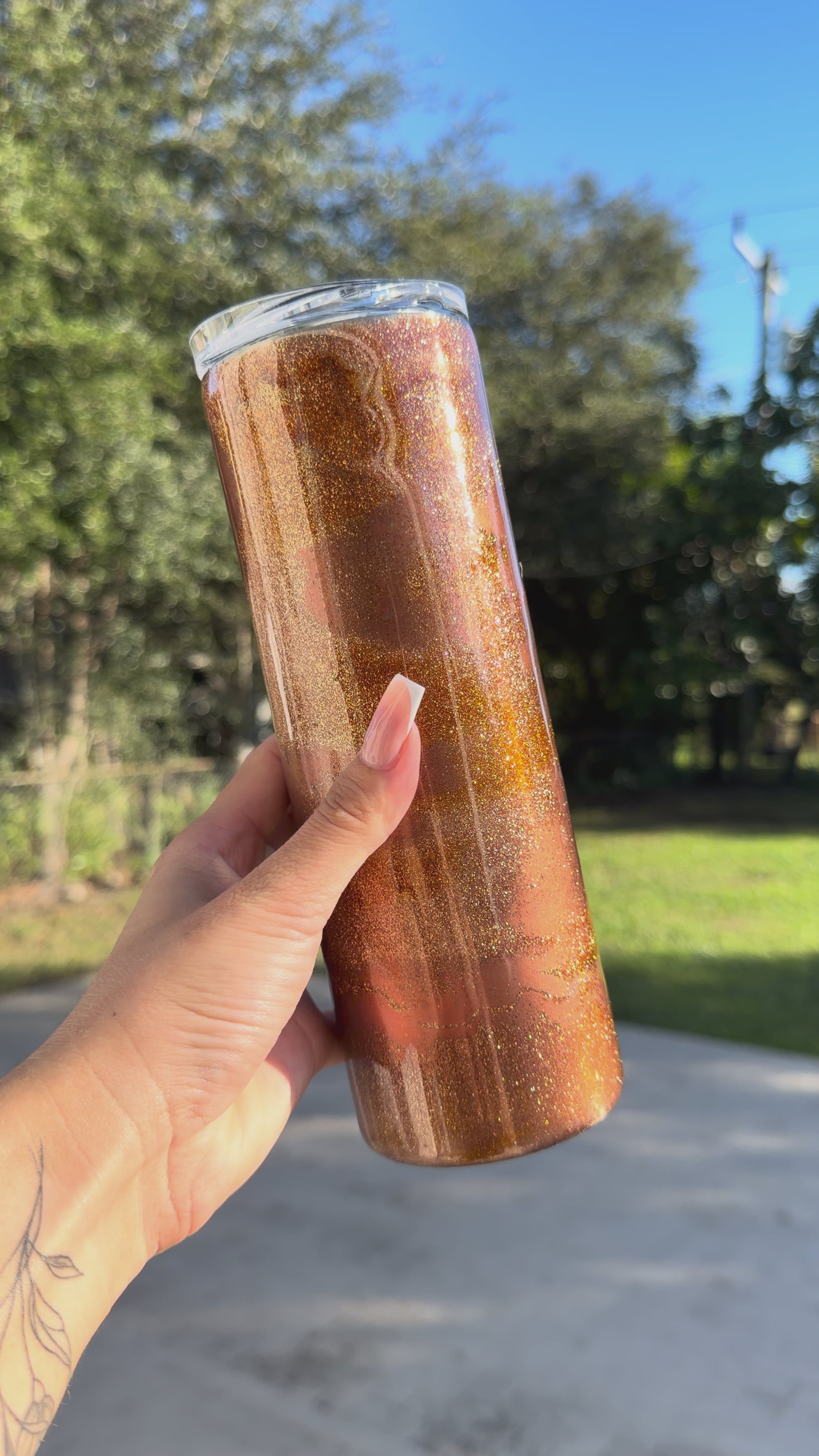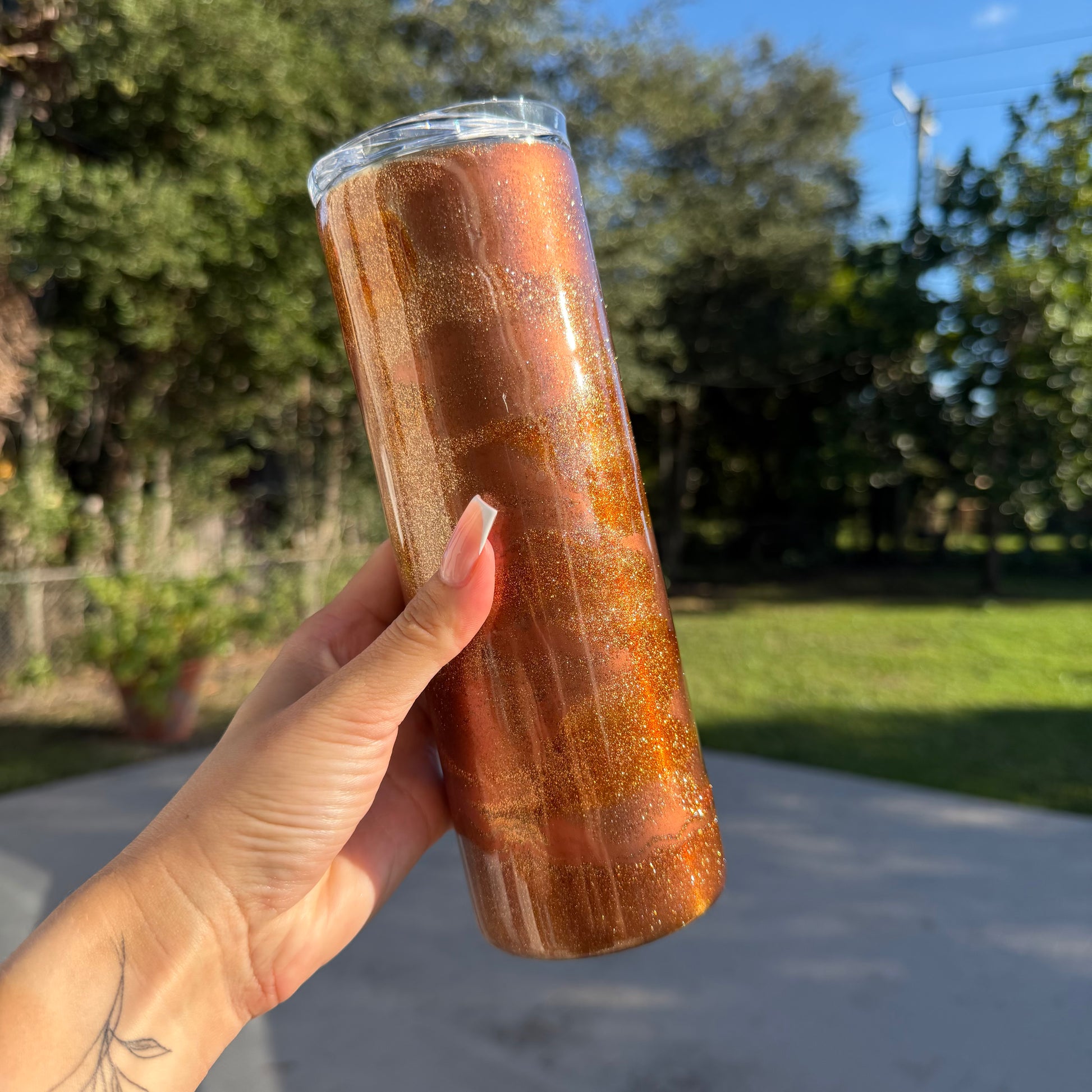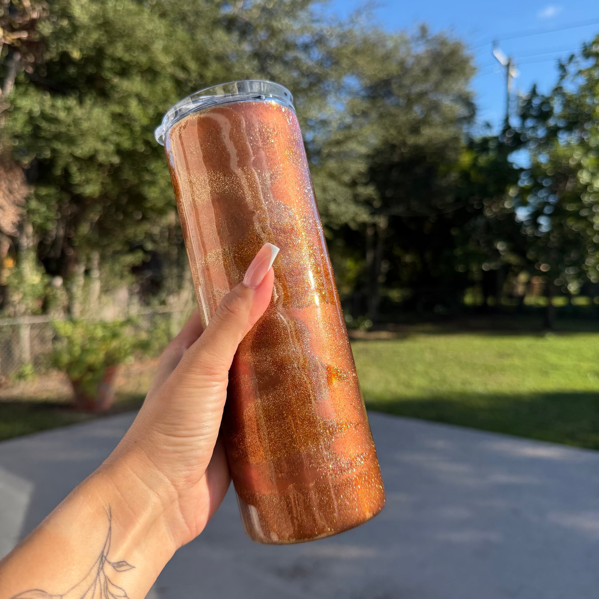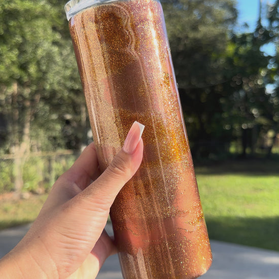Elevate every sip with our beautifully crafted, one-of-a-kind 20 oz tumblers. Perfect for iced coffee, smoothies, seasonal cocktails, and more! Each tumbler comes with a clear sliding lid and straw for easy, spill-free sipping on the go—bringing a touch of elegance to your day.