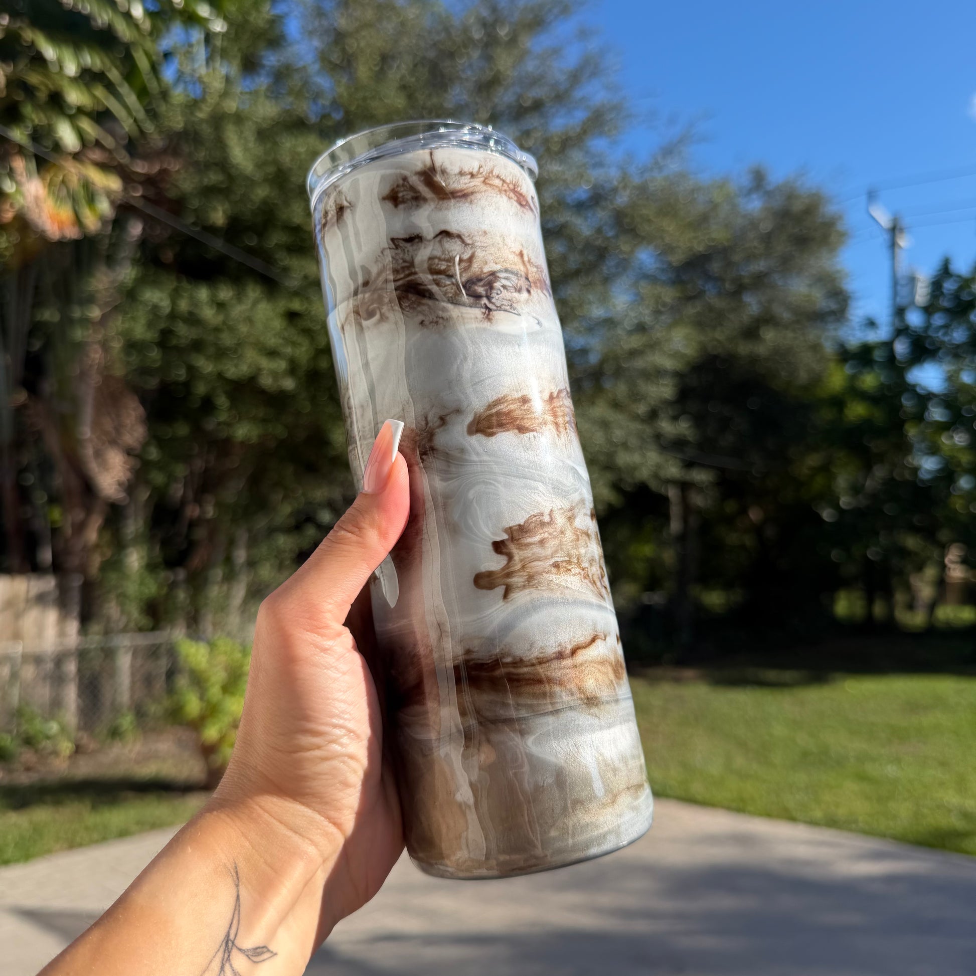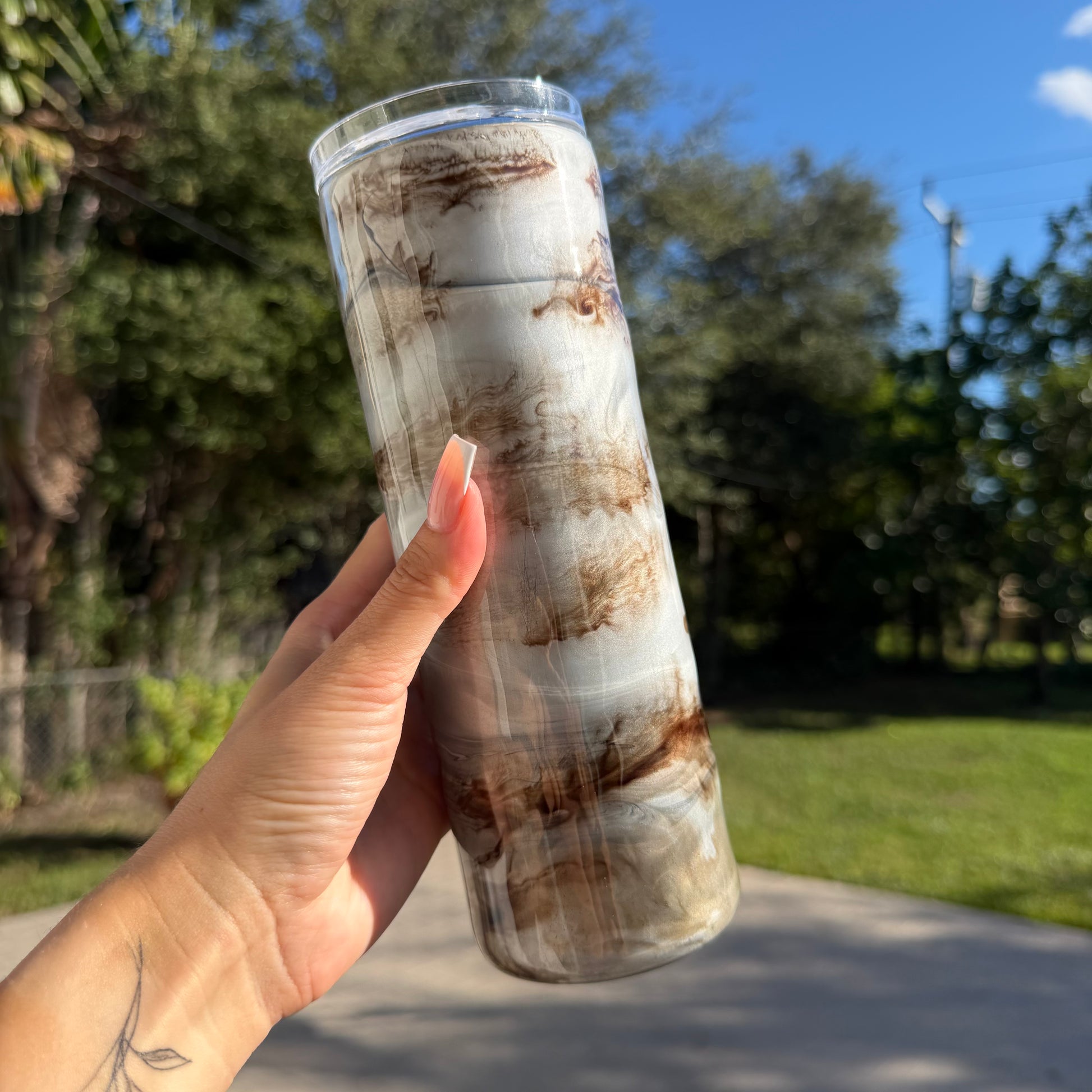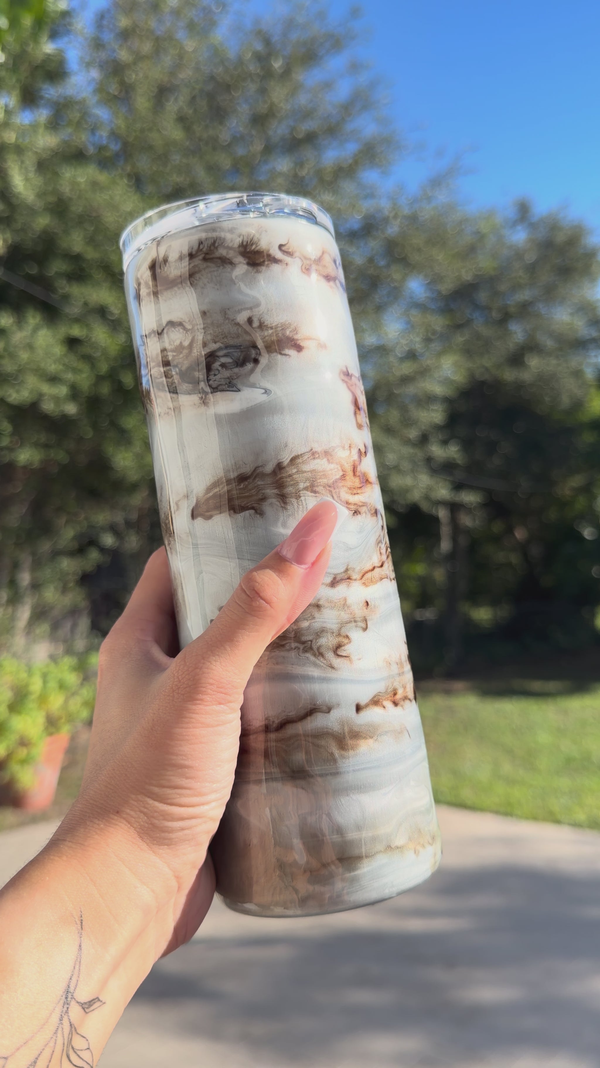Elevate every sip with our beautifully crafted, one-of-a-kind 20 oz tumblers. Perfect for iced coffee, smoothies, seasonal cocktails, and more! Each tumbler comes with a clear sliding lid and straw for easy, spill-free sipping on the go—bringing a touch of elegance to your day.