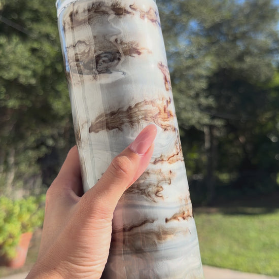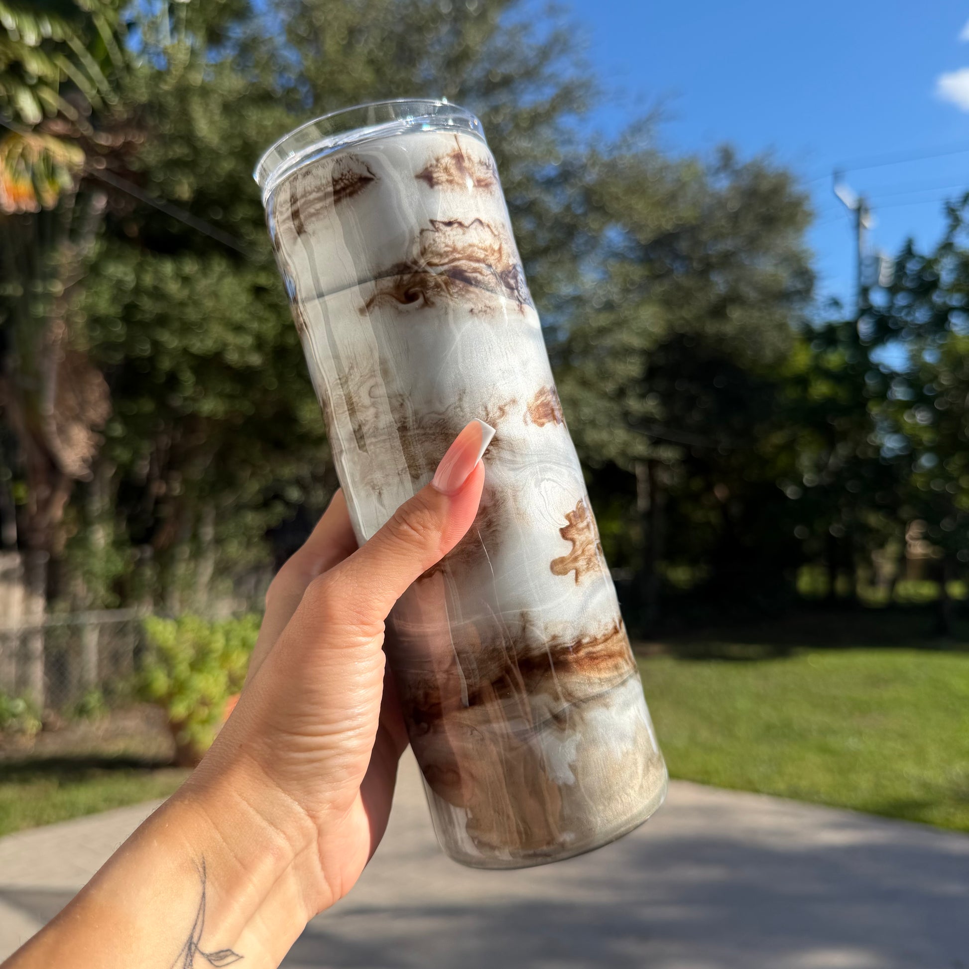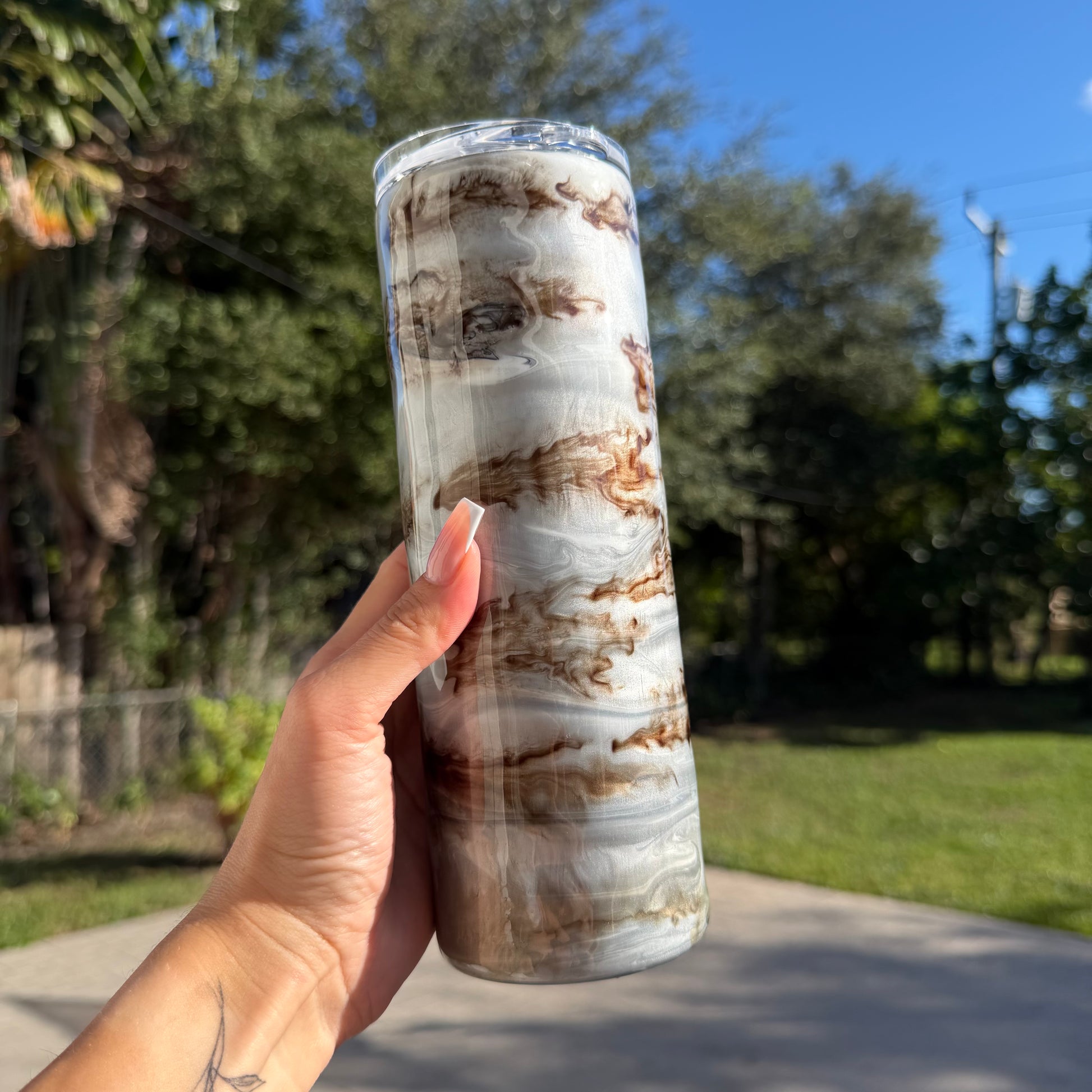 Elevate every sip with our beautifully crafted, one-of-a-kind 20 oz tumblers. Perfect for iced coffee, smoothies, seasonal cocktails, and more! Each tumbler comes with a clear sliding lid and straw for easy, spill-free sipping on the go—bringing a touch of elegance to your day.