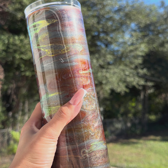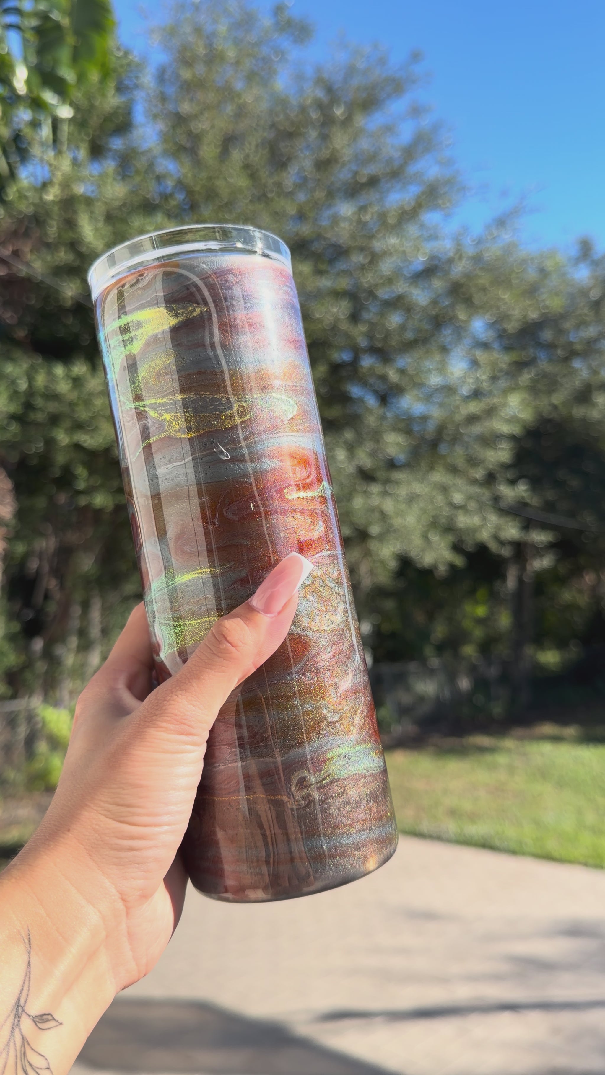 Elevate every sip with our beautifully crafted, one-of-a-kind 20 oz tumblers. Perfect for iced coffee, smoothies, seasonal cocktails, and more! Each tumbler comes with a clear sliding lid and straw for easy, spill-free sipping on the go—bringing a touch of elegance to your day.