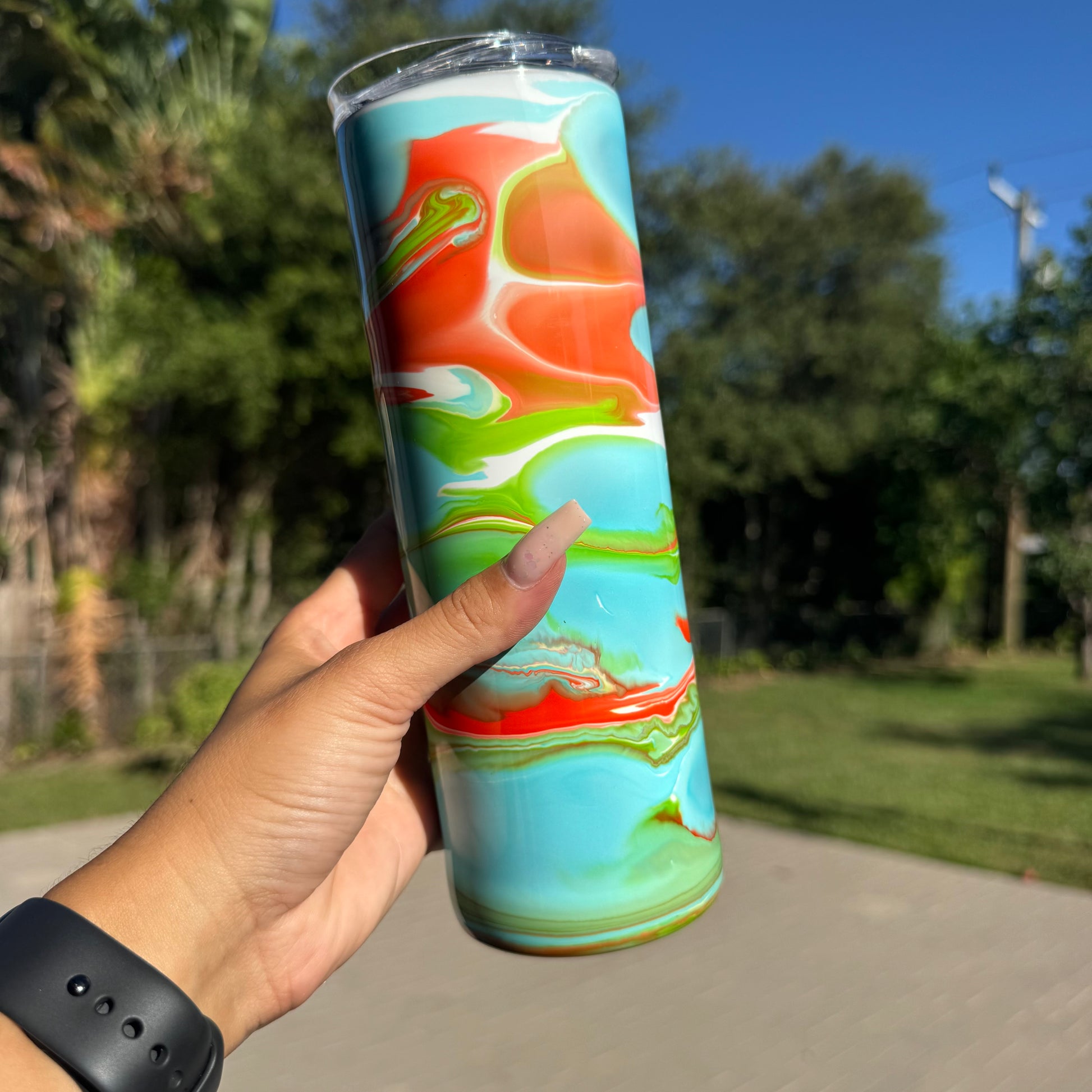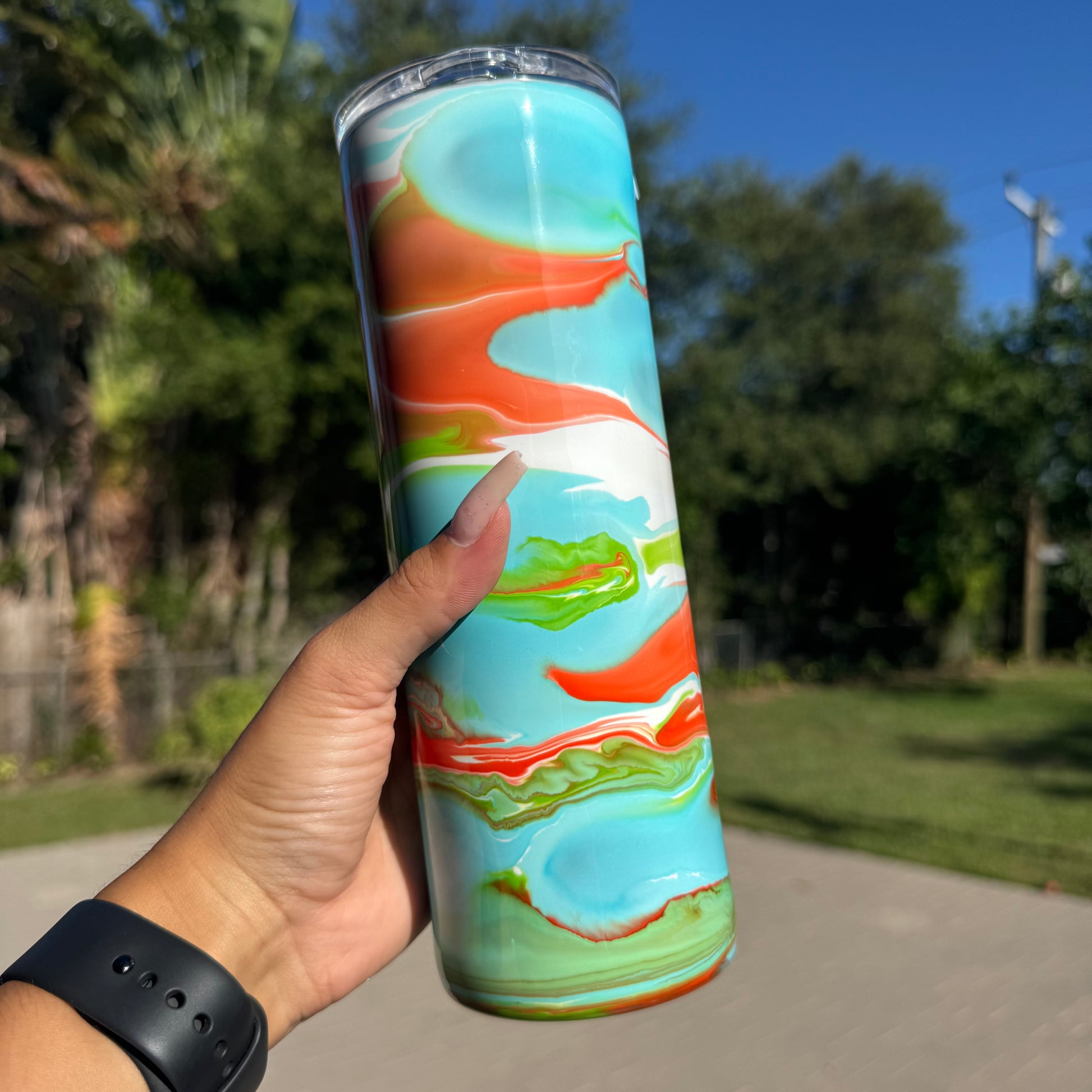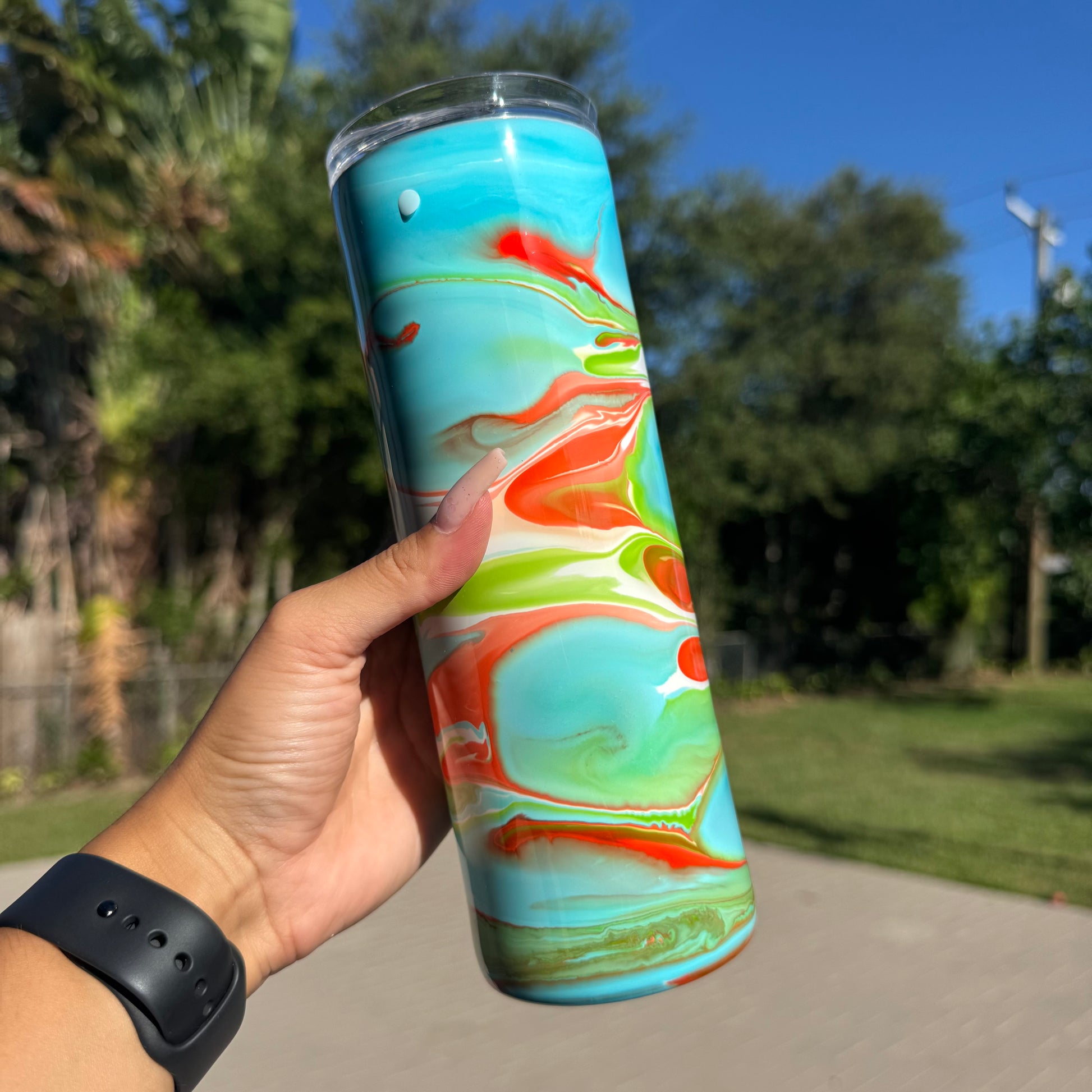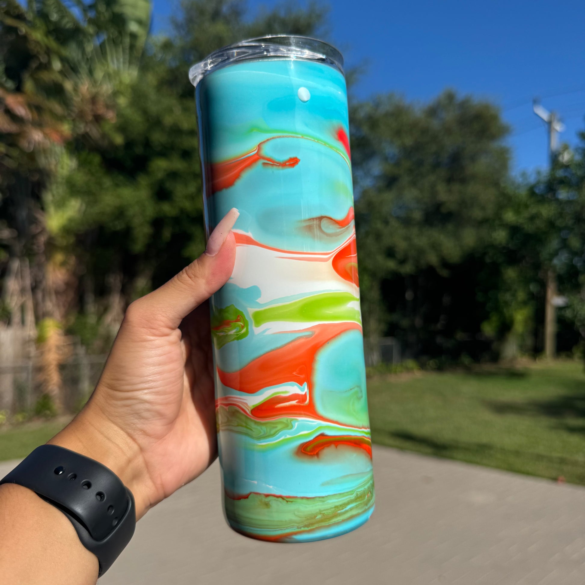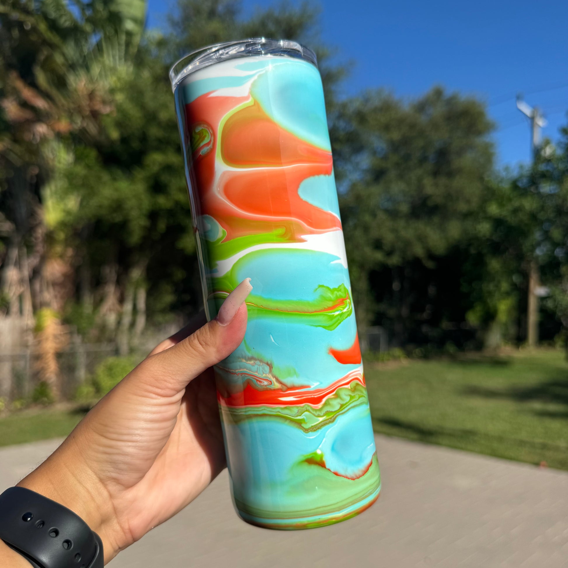 Elevate every sip with our beautifully crafted, one-of-a-kind 20 oz tumblers. Perfect for iced coffee, smoothies, seasonal cocktails, and more! Each tumbler comes with a clear sliding lid and straw for easy, spill-free sipping on the go—bringing a touch of elegance to your day.