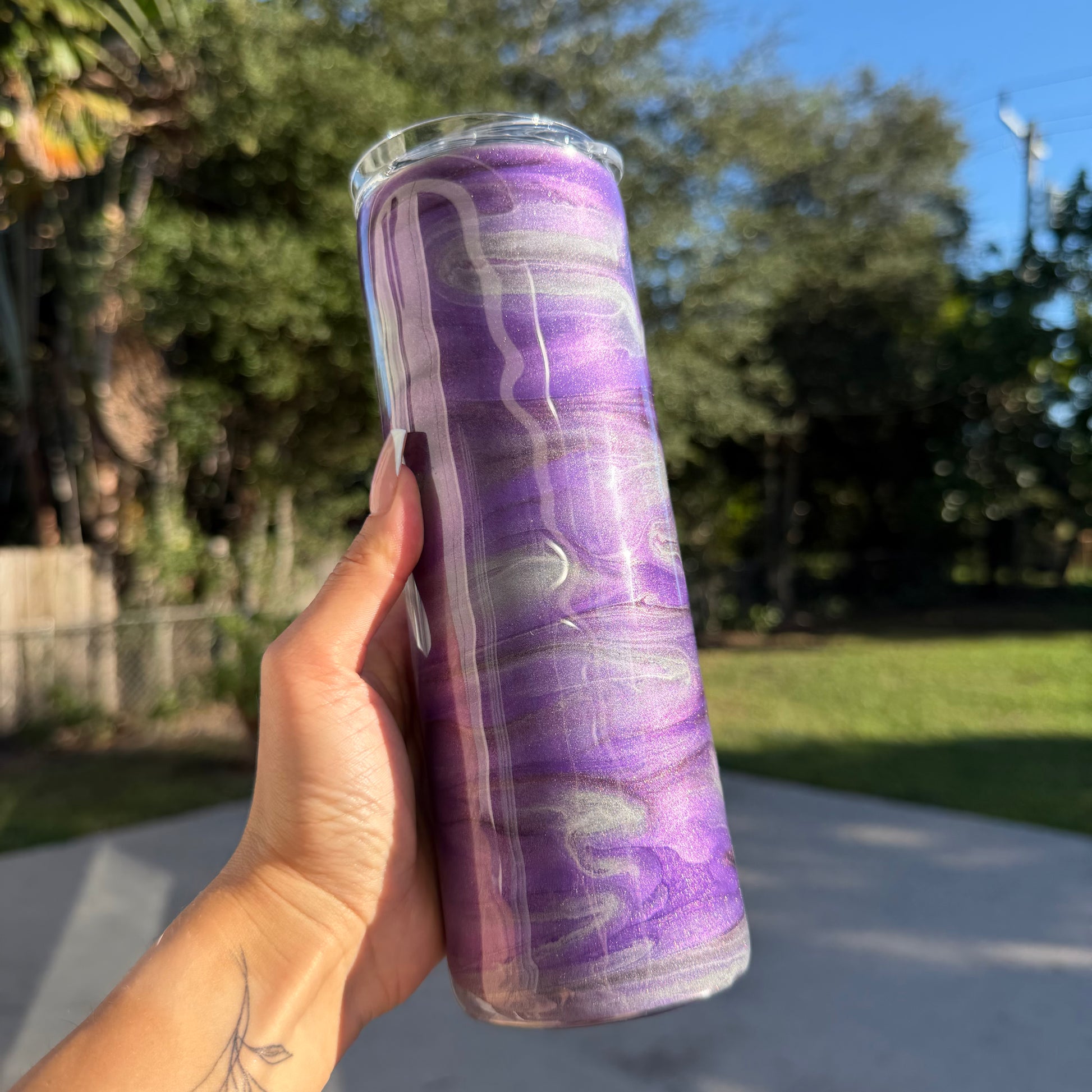 Elevate every sip with our beautifully crafted, one-of-a-kind 20 oz tumblers. Perfect for iced coffee, smoothies, seasonal cocktails, and more! Each tumbler comes with a clear sliding lid and straw for easy, spill-free sipping on the go—bringing a touch of elegance to your day.